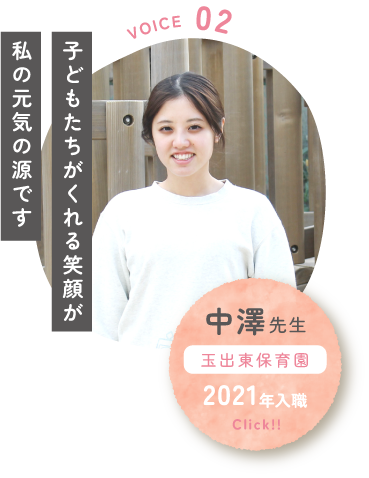 「子ども一人一人を大切にし、保護者からも信頼され、地域に愛される保育所を目指す」といったしっかりとした理念を持って運営しており、法人としての歴史もあるため、地域や保護者の方から信頼をいただいています。親子2代で利用されている方も各クラスに在籍しており、それだけ信頼と愛着をいただけていると言えます。