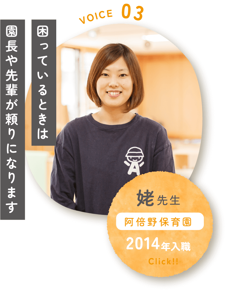 基本的に複数担任制で事務作業も分担しており、勤務時間内で完結できるようにしています。1年単位の変形労働時間制をとっており、4週間に6日の休日保障、加えて夏季には5日の特別休暇があります。有給休暇も取りやすく、急な休みにも対応ができるため、子育て真っ最中の職員もたくさんいますが安心して働いています。