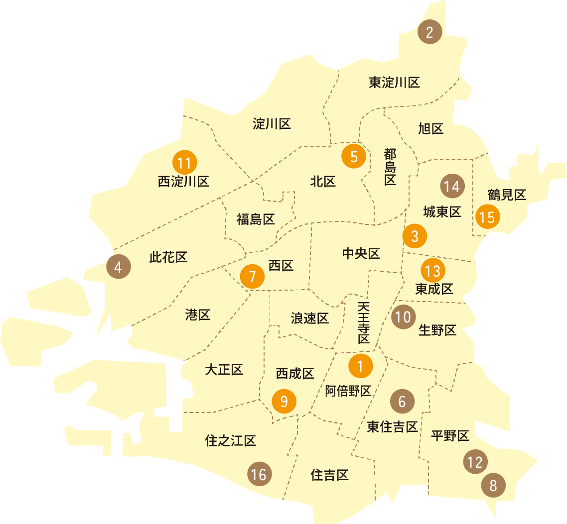 | 10 | 北桃谷乳児保育園(生野区桃谷) | 06-6731-1548 |